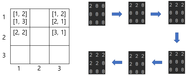 4-2. 주변에 2가 있다면 board 매트릭스의 해당 좌표에 2를 입력합니다.