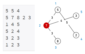 graph[b - 1].append([a - 1, i])