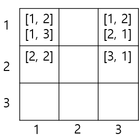 각 방은 (1, 1)부터 (N, N)까지 번호가 매겨져 있습니다.(2≤N≤100).